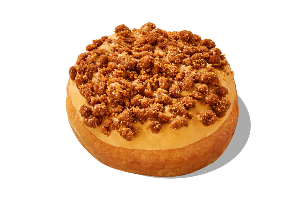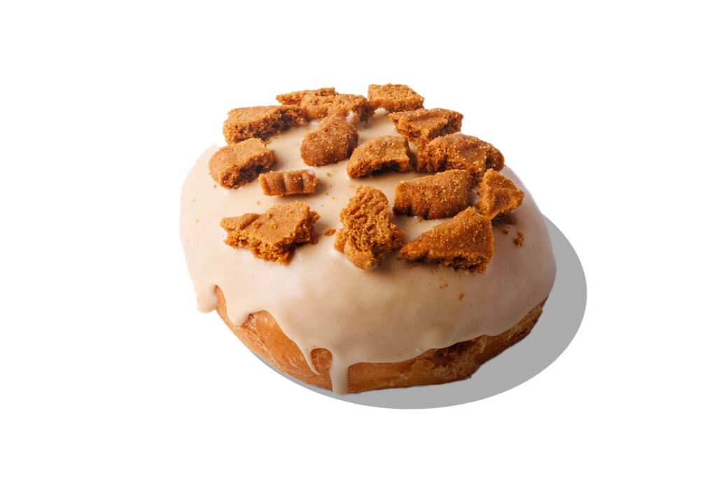 Our new Biscoff donut is a creamy Biscoff filled donut with icing, and crushed Biscoff topping.