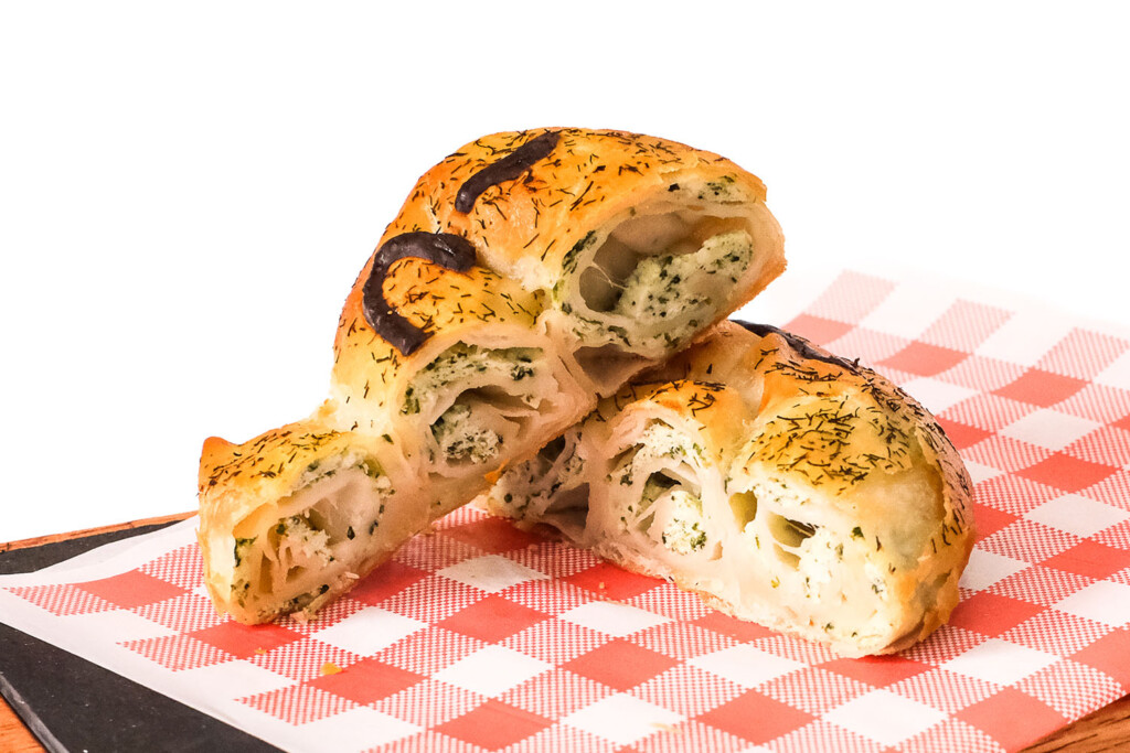 A crowd favourite and our most popular choice. This creamy blend of spinach and ricotta offers the comforting, familiar taste of a classic spanakopita.